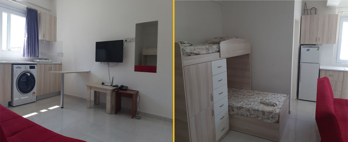 Odalar birbirinden bağımsızdır. Her odada mutfak, Banyo-wc, Tv, Klima, çamaşır makinesi, ütü ve ütü masası mevcuttur.